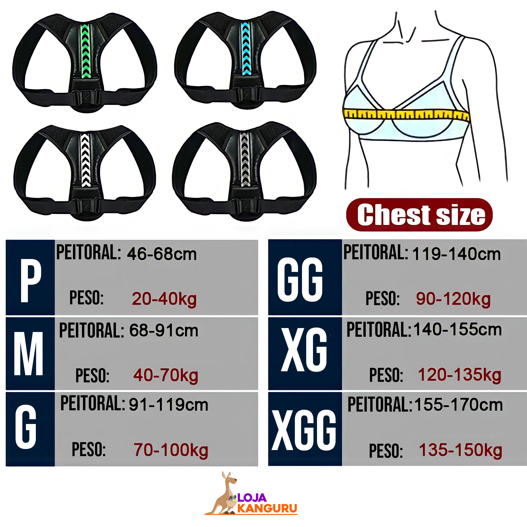 O Corretor fornece suporte de postura clavicular para todas as atividades, incluindo trabalhar, levantar e sentar na sua mesa de computador. Alinha corretamente sua postura tirando pressão da suas costas, aliviando assim a dor nas costas, pescoço, ombro e clavícula.